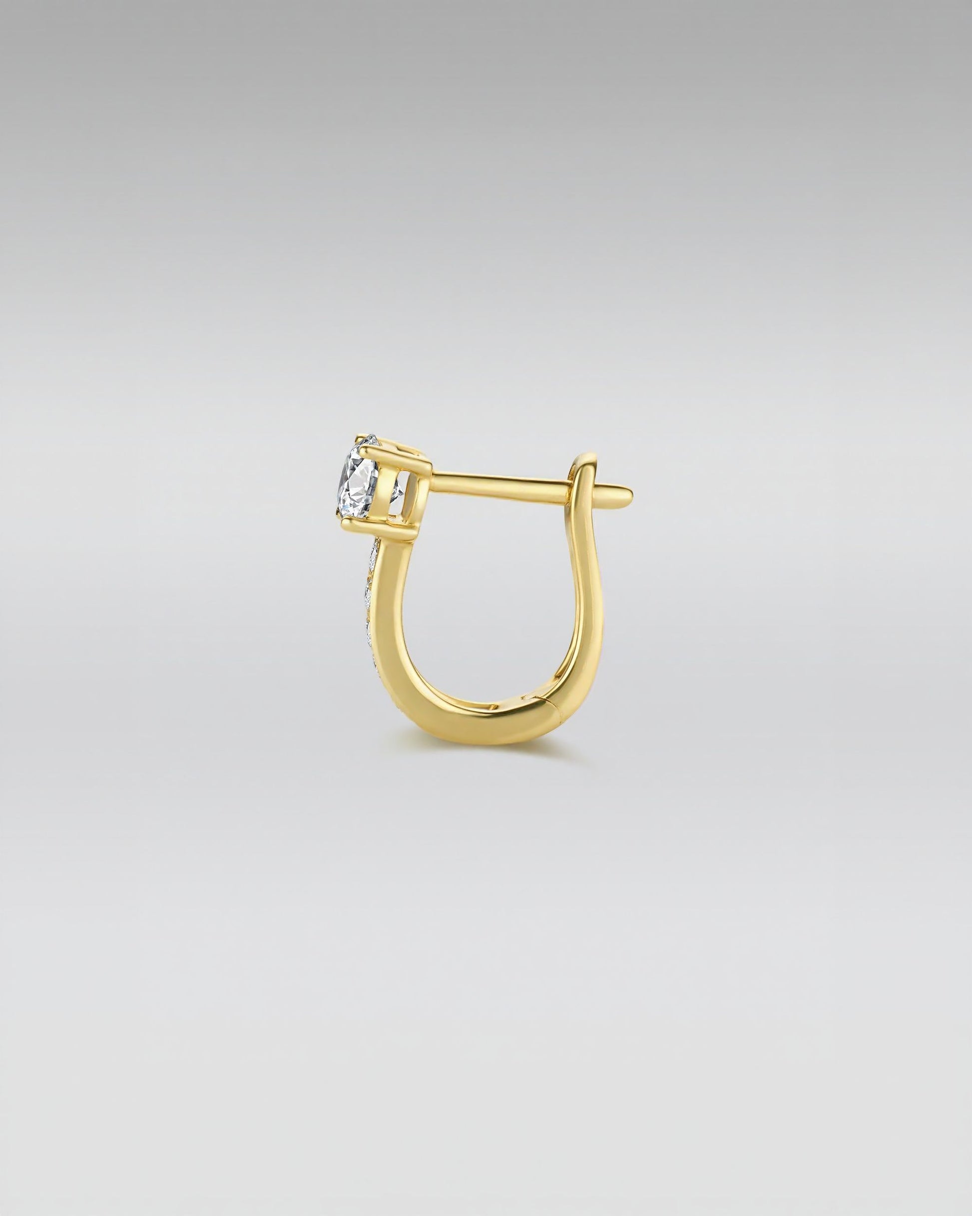 These elegant hoop earrings are meticulously crafted from solid 18k gold and adorned with brilliant lab-grown diamonds. A sparkling center stone is elevated by a pavé of smaller diamonds, creating a timeless, radiant silhouette. Ethically sourced and sustainably crafted, these earrings make an unforgettable statement for both everyday wear and special occasions.
