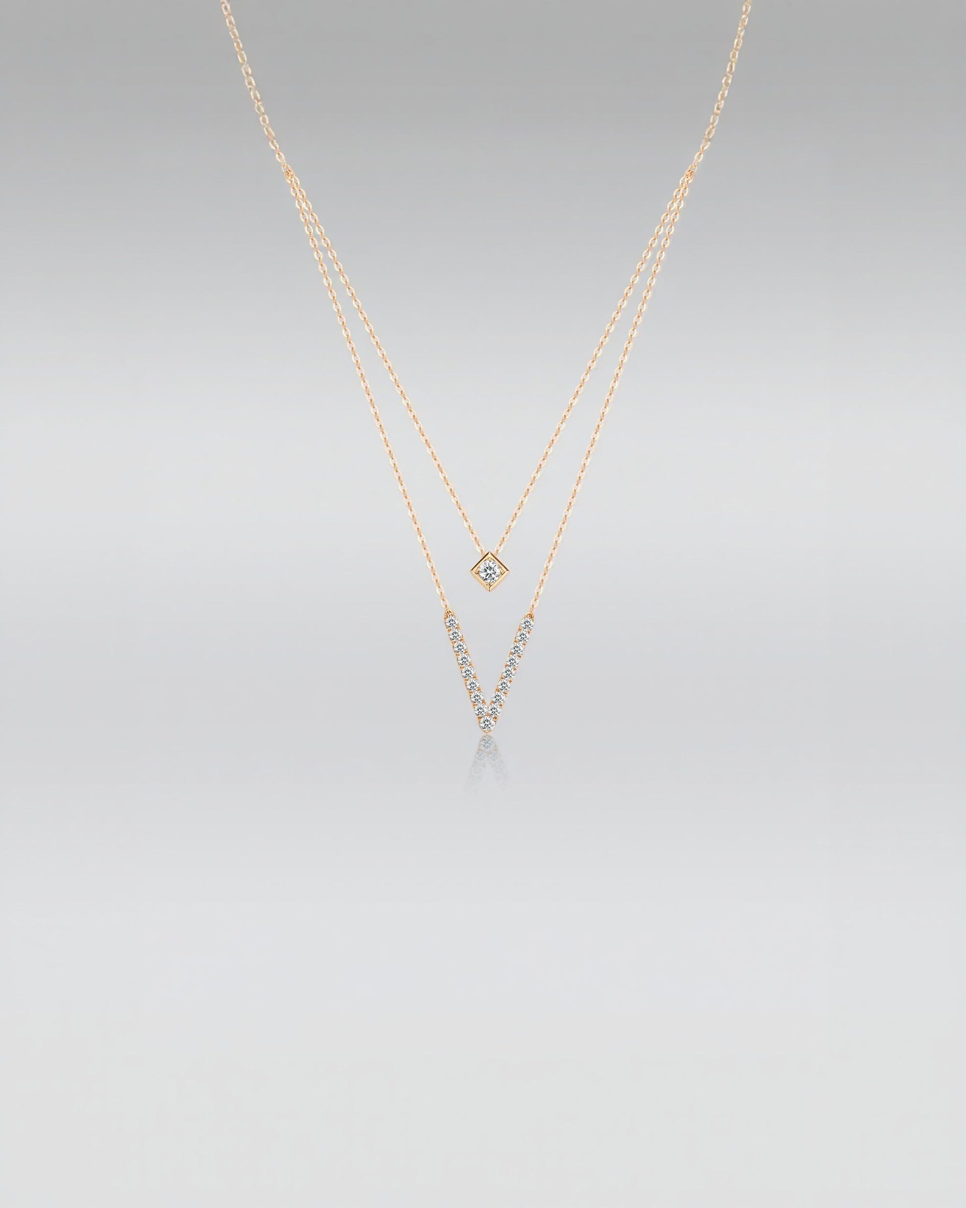 18k Rose Gold Layered V Necklace with Lab Grown Diamonds