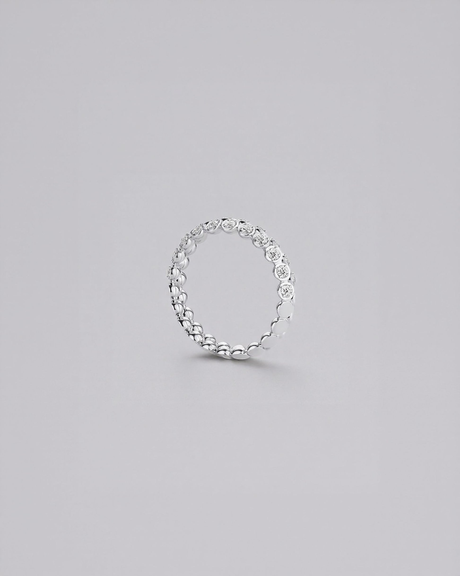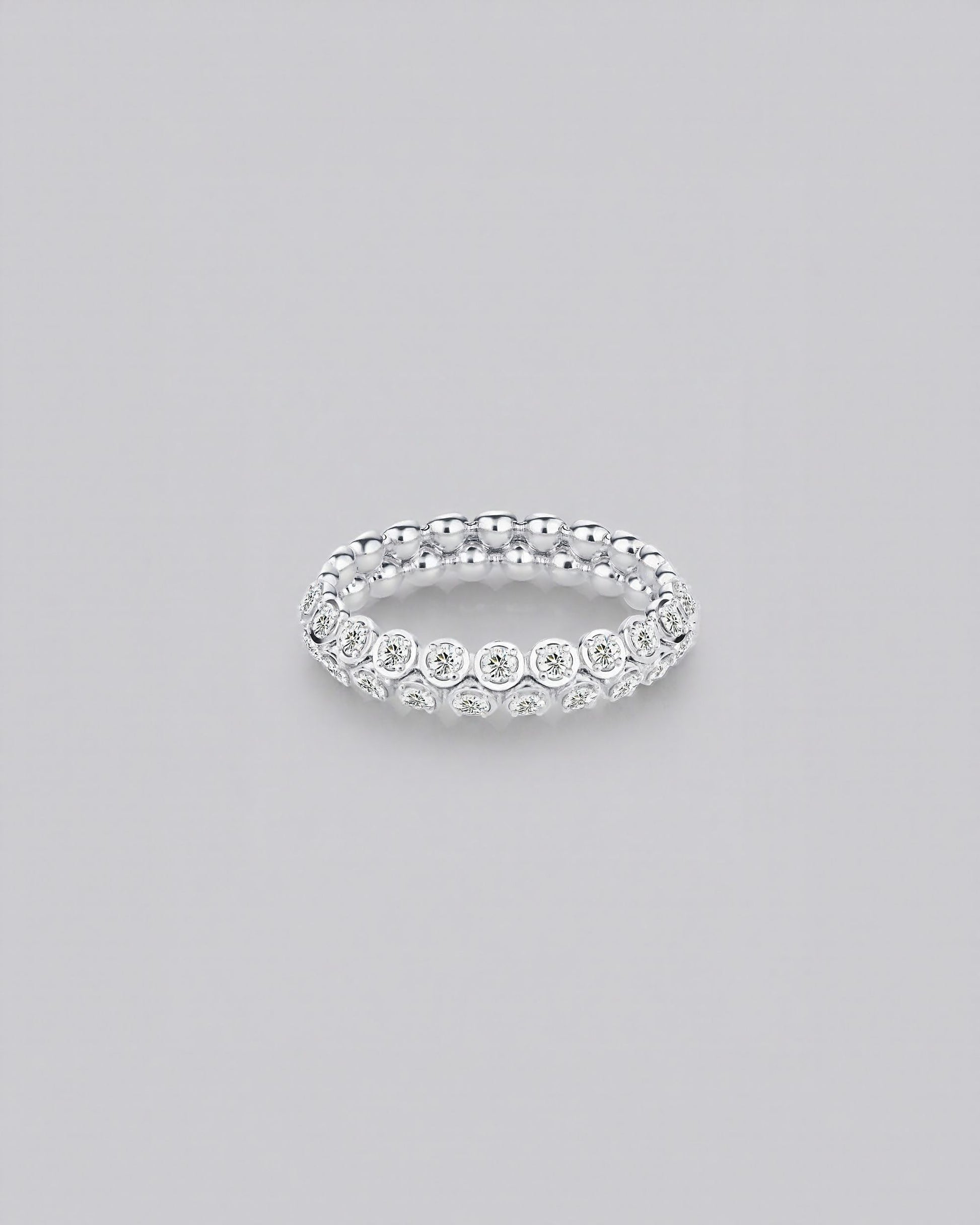 Double Row Design: Two continuous rows of bezel-set diamonds create a radiant, modern silhouette that stands out.