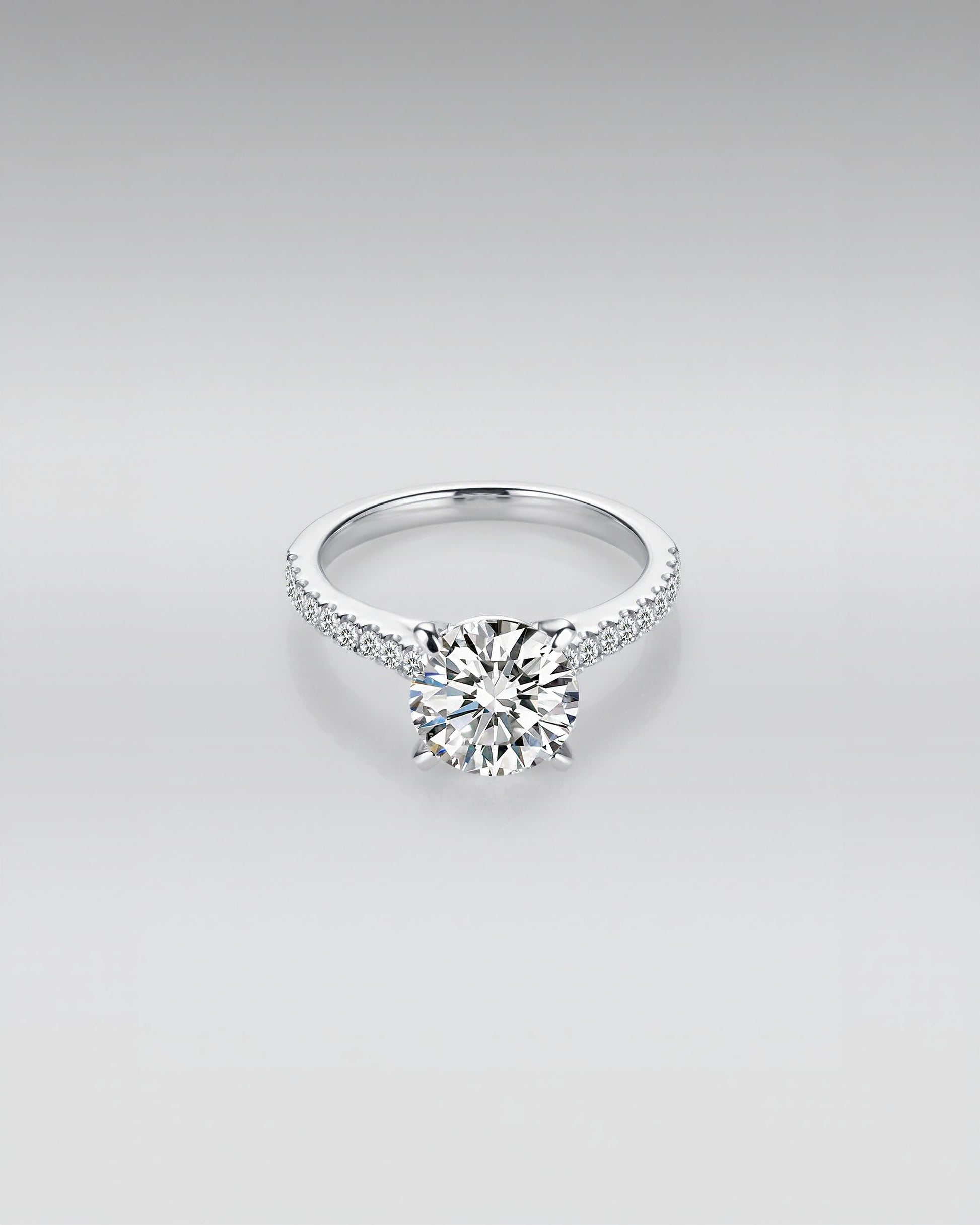 Pavé Band: Sparkling accent diamonds add extra radiance and sophistication to the classic solitaire design.