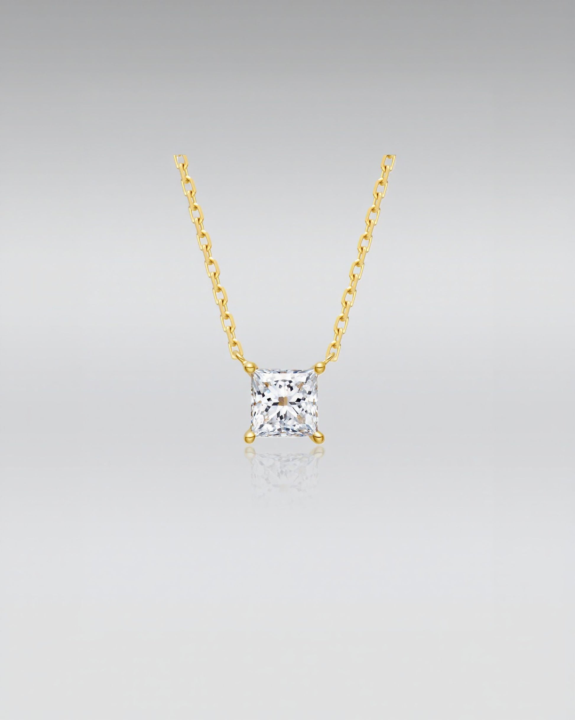 Square Diamond Necklace: This delicate necklace features a dazzling princess-cut diamond, beautifully set in a minimalist rose gold chain. The elegant and understated design makes it perfect for everyday wear or layering with other pieces, adding a touch of sophistication and sparkle to any look.